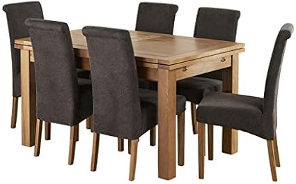 Fixed central metal base with four elliptical sloping legs and book leaf opening with central leaf in the same colour as the base. One with plenty of storage, or an extending table top. How about one with a lovely tactile wooden finish! The perfect table for any room. The extending dining set is available with 4 to 6 dining chairs in both standard and carver designs.