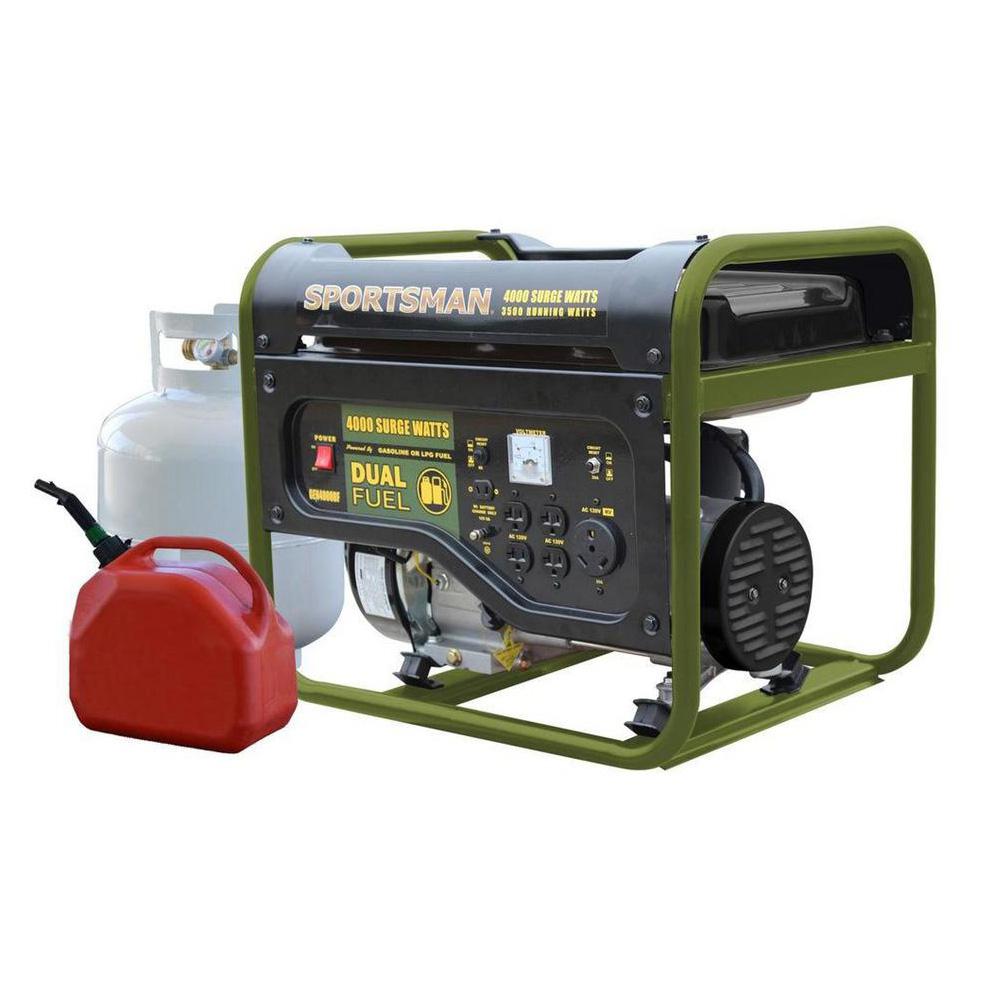Sportsman 4000 Generator Dual Fuel : Sportsman 4,000/3,500-Watt Dual Fuel Powered Portable ... / Comprehensive spec review of the sportsman gen4000df rv ready 3500 running watts 4000 peak watts compact hybrid more quiet and better.the sportsman gen4000df is a compact open frame dual fuel generator with a rated wattage of 3500 w and a starting wattage of 4000 w.. Environmentalists will insist that a hybrid generator that can use an alternative fuel source is worth its weight in gold. Free shipping for many products! 4000 surge watts / 3500 running watts dual fuel generator instruction manual. This generator is not recommended for high altitude use of 3. Home depot has the sportsman 4000w dual fuel powered portable generator for a low $269.00 free shipping.